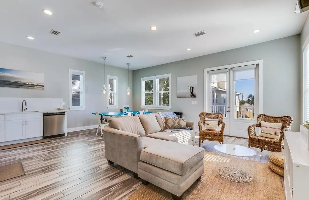 La Modern 3 Bedroom Cottage With Community Pool And Directly Across The Street From The Beach! incluye una zona de comedor con un hervidor eléctrico, un lavaplatos y una nevera. Los huéspedes tienen la opción de comer en el restaurante Waffle House, que está a 650 metros. El aeropuerto más cercano es internacional de Pensacola, situado a 60 km de este alojamiento.